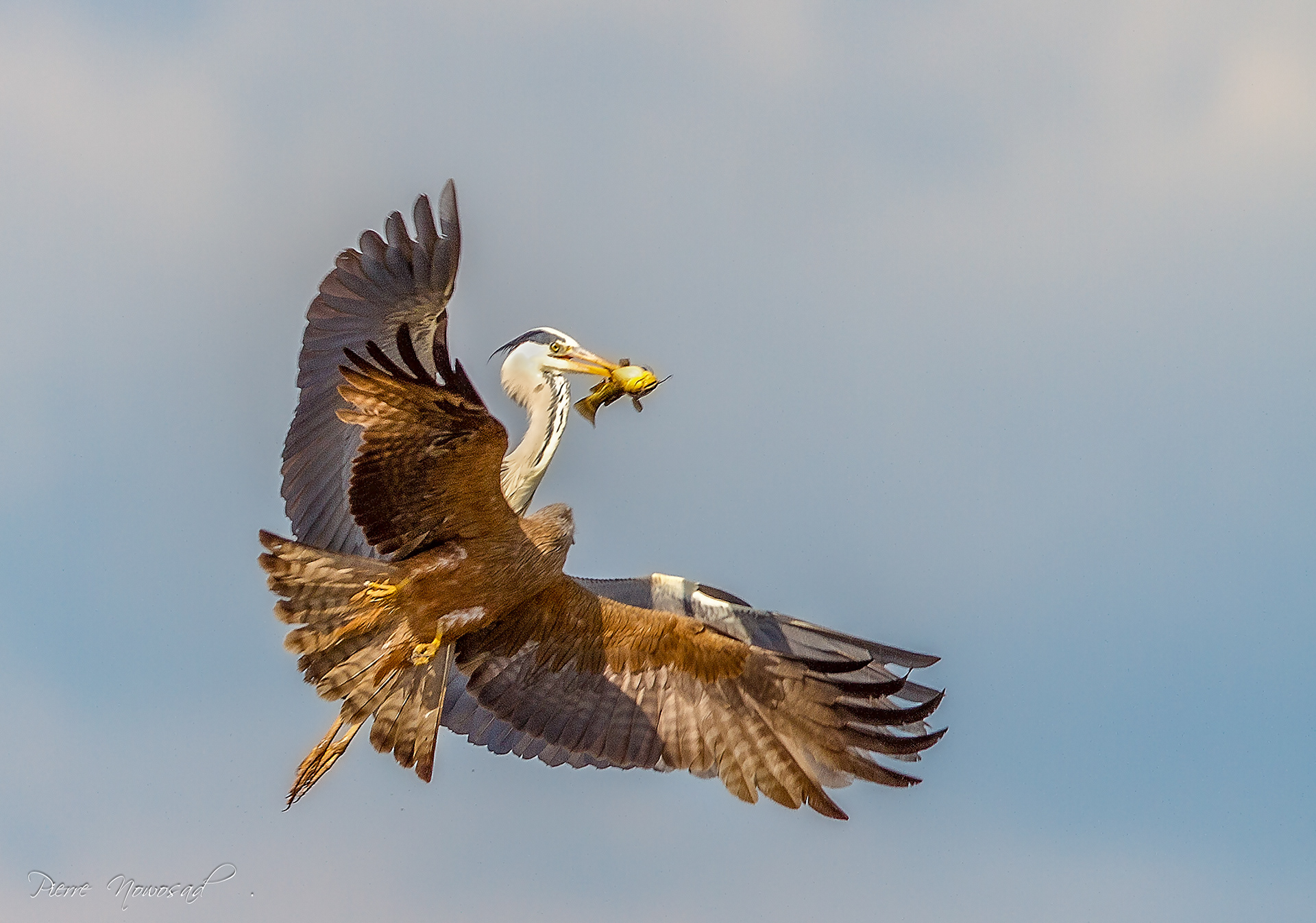 Great Blue Heron attacked by Black Kite